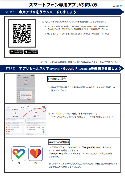 スマホアプリの主な機能 1)歩数を送信する 2)自分の歩数を確認する 3)歩数のランキングをみる 4)歩数のグラフをみる 5)市からのお知らせを受け取る スマホアプリの使い方 iPhone、Androidアプリをお使いの方へ、ダウンロードから使い方までを説明します。 利用規約terms of service ※アプリは事前登録後にご利用できます。